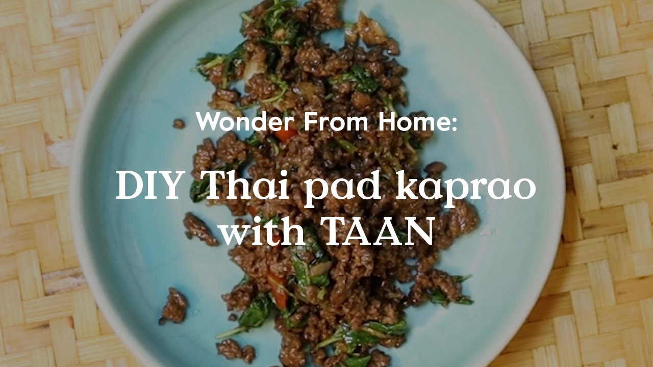 เราขอยกตัวอย่างเรื่องราวที่น่าสนใจจากแคมเปญ Wonder From Home มาให้ดูคร่าว ๆ ก่อน เริ่มจากคลิปวิดีโอสอนทำอาหารเมนูคู่ชาติไทยอย่างผัดกะเพรานั่นเอง โดยได้เชฟฝีมือดีอย่างเชฟเทพจากร้าน TAAN มาแชร์สูตรเด็ดอีกด้วย!